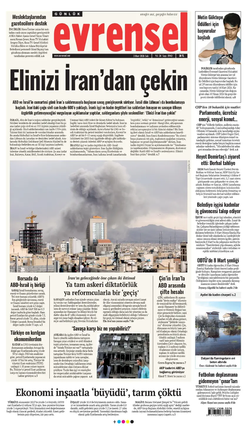ABD ve İsrail’in İran’a yönelik başlattığı, Tahran yönetiminin ise İsrail ile bölgedeki ABD üslerine düzenlediği misillemelerle süren savaş 3. gününde. Hamaney’in ölümünün ardından İran saldırılarını yoğunlaştırırken, Trump operasyonların 4 hafta sürebileceğini açıkladı. İran Kızılayı, saldırılarda can kaybının 555'i geçtiğini bildirirken, başkent Tahran, yoğun bombardıman altında. ABD ordusu ise savaş bölgesine takviye güç gönderme kararı aldı.
