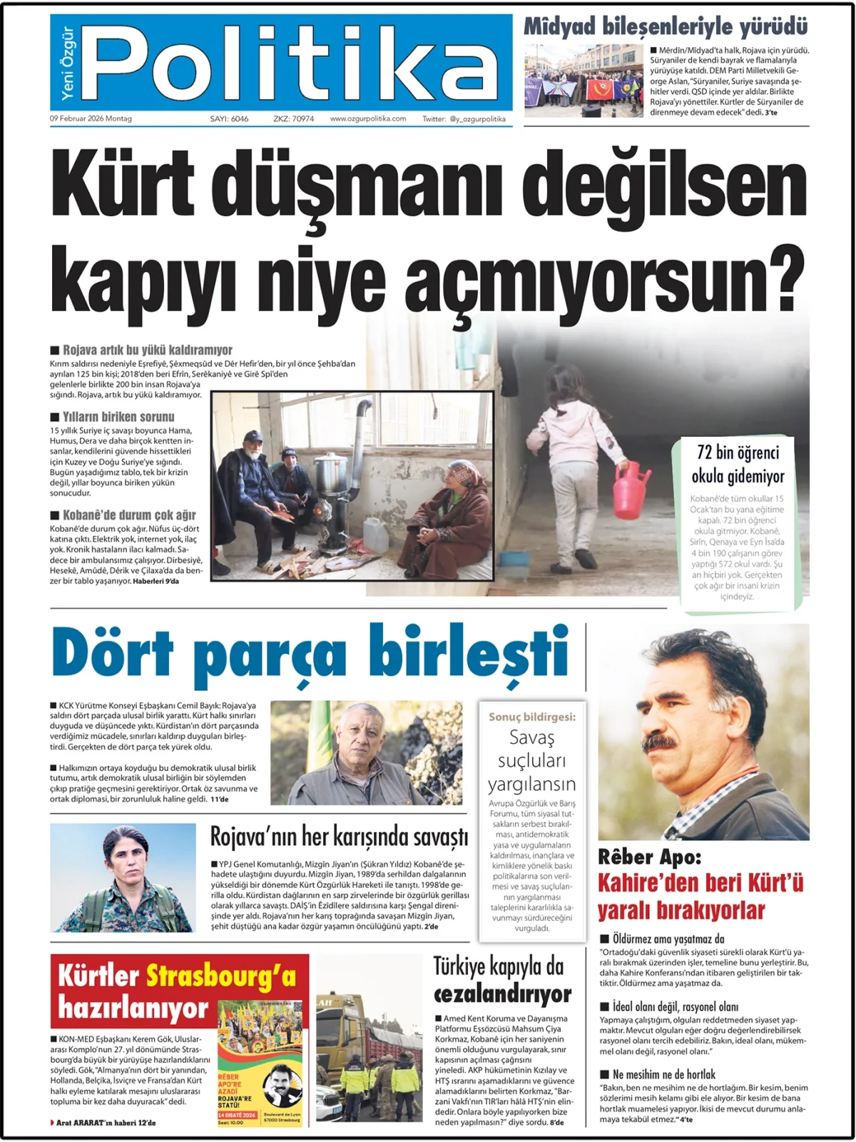 Geçici Şam hükümeti ve DSG arasındaki mutabakatta "tamamlanması gereken adımlar" ve iki tarafta da "güvensizlik" olduğunu belirten Dışişleri Bakanı Hakan Fidan, "YPG'nin tarihi bir dönüşüm yaşaması gerekiyor. Ahmet Şara ve arkadaşlarının çizgisi düzgün. Halka zulmetmediler" dedi. Fidan, "Bu işin bir de Irak ayağı var. Suriye ayağı bittikten sonra Irak ayağı var. İnşallah Irak'ta buradakinden ders çıkartırlar da daha akıllı bir karar alırlar ve oradaki geçiş daha kolay olur" diye konuştu.