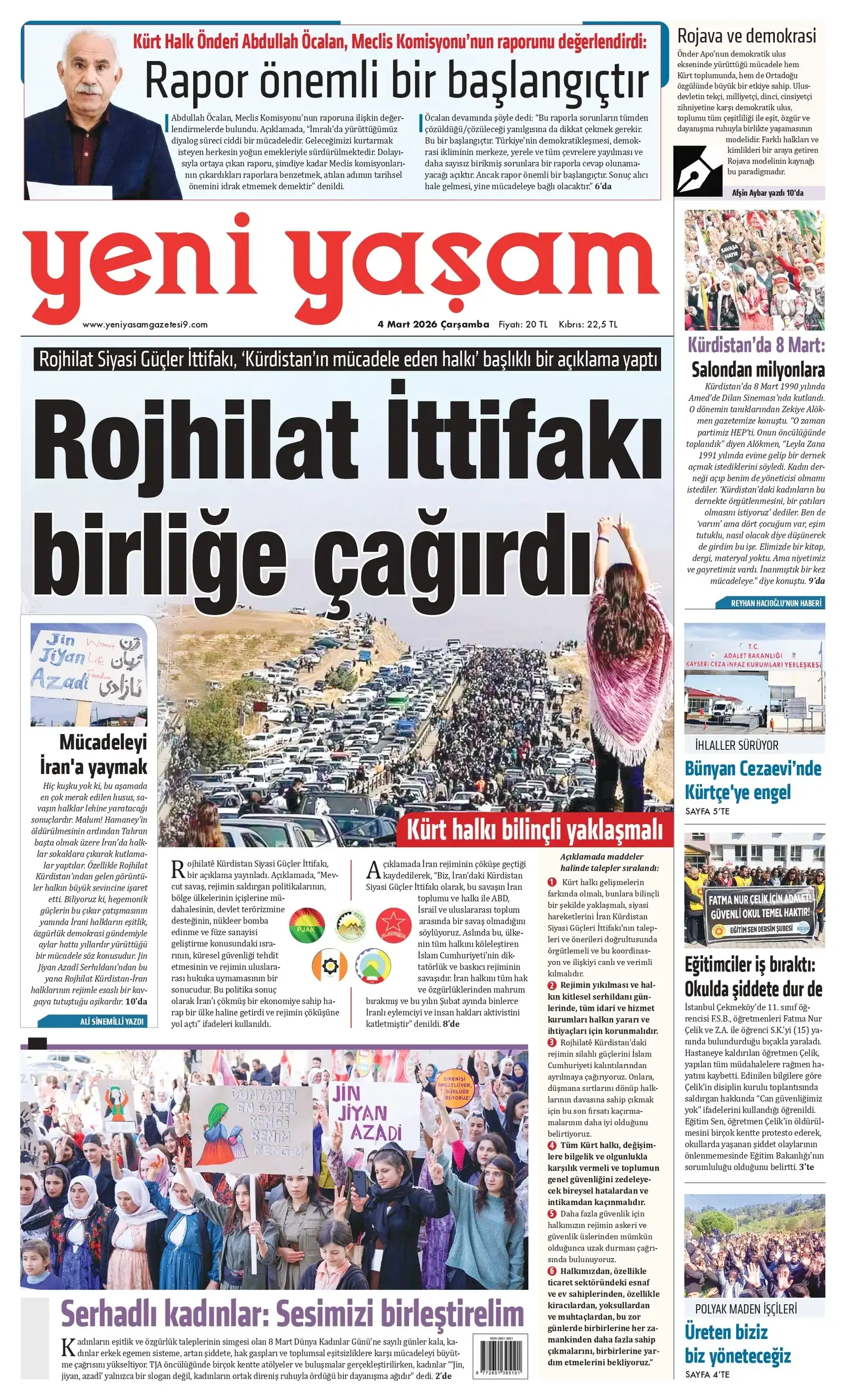 8 Mart Dünya Kadınlar Günü yaklaşırken kadınlar Türkiye'nin dört bir yanında sokağa çıkarak taleplerini dile getirmeye başladı. Savaş ve çatışmaların gölgesinde başlaya 2026 yılında sokağa en çok yansıyacak taleplerin başında bölgede çatışmaların son bulması ve barışın sağlanması geliyor. Barış talebinin yanı sıra özgürlük, demokrasi, kadına yönelik şiddet ve ayrımcılığın son bulması, kadın yoksulluğunun önlenmesi, eşitlik talepleri de alanlara yansıyor.