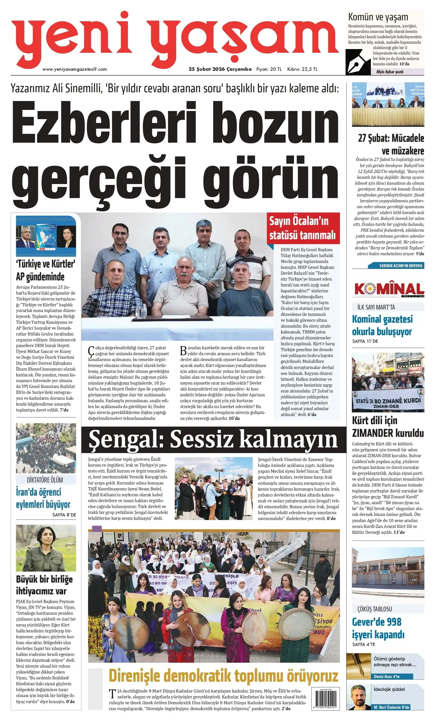 DEM Parti Sözcüsü Doğan, Meclis Komisyonu’nun ortak raporunun “tarihi eşik” olarak tanımlanmasının yeterli olmadığını belirterek, önemli olanın bu eşiğin nasıl aşılacağı olduğunu vurguladı; yargı kararlarının uygulanması, kayyum uygulamasına son verilmesi ve Abdullah Öcalan için “özgür çalışma ve iletişim koşullarının” sağlanması çağrısında bulundu.