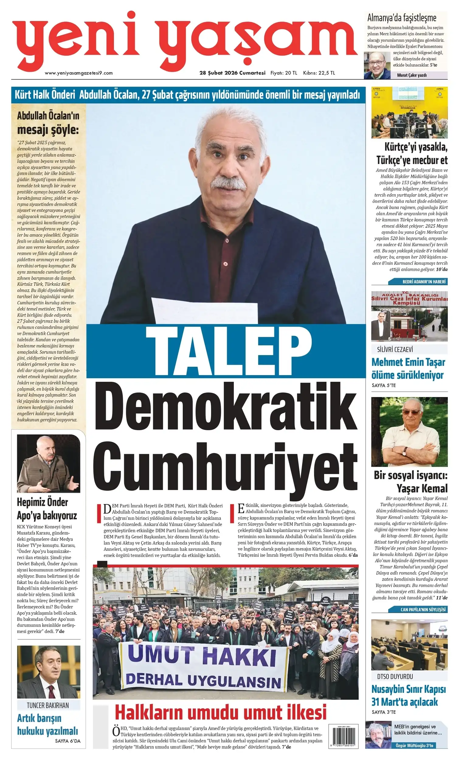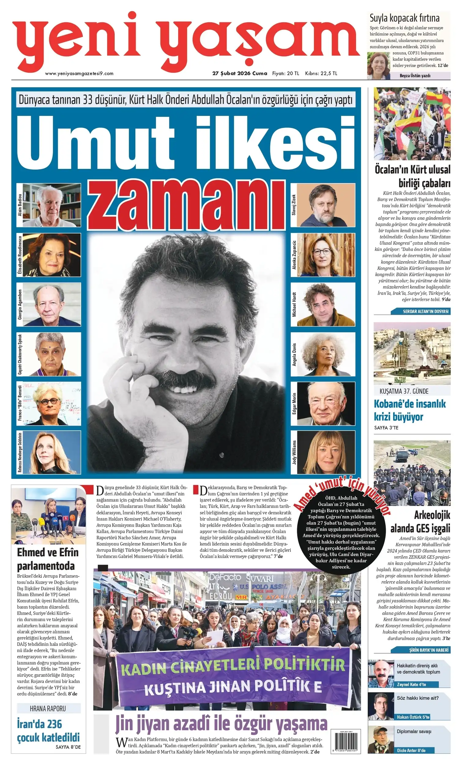 27 Şubat’ın yıldönümünde yayınladığı mesajında Abdullah Öcalan, "demokratik entegrasyona geçiş, barış yasalarını gerekli kılar" vurgusunda bulunarak, "Şimdi negatif aşamadan pozitif inşa aşamasına geçmeliyiz. Yeni bir siyaset dönemine, stratejisine kapı açılıyor. Şiddete dayalı siyaset dönemini kapatıp, demokratik toplum ve hukuk temelli bir süreci açmayı hedefliyor ve her kesimi bu yönde imkân yaratmaya ve sorumluluk almaya davet ediyoruz" çağrısında bulundu.