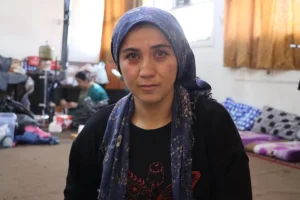 Girkê Legê’deki barınaklarda kalan Afrinli göçmenlerden Emel Qenber üç kez zorla yerinden edildiğini, son göçün çok zor geçtiğini ve yolda arabalarının da bozulduğunu söyledi.