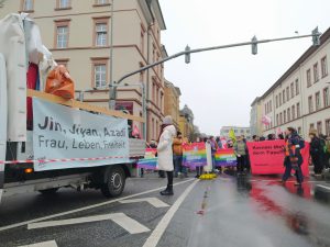 Giessen Garı ve Oswaldsgarten’daki eylemler polisle, eylemciler sık sık karşı karşıya geliyor.