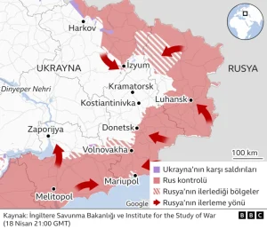 Ukraynalı yetkililer ve Batılı analistlere göre, Rusya’nın topyekün işgalinden önce, Ukrayna’nın yaklaşık yüzde 7’sini kontrol ediyordu; bu bölgeye Kırım ve doğudaki Donetsk ve Luhansk bölgelerinin bazı kısımları dahildi .