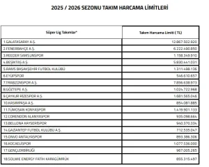 Kulüp Lisans Kurulu, 2025-2026 Sezonu Süper Lig Takım Harcama Limitlerini ikinci transfer ve tescil dönemi ile ilgili olarak belirledi.