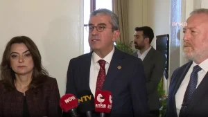 “Türkiye’de demokrasi, barış ve adalet ciddi risk altındadır. Bu ülkede demokratik, meşru, yarışmacı siyaseti elemine etmeye çalışan, rakiplerini araçsallaştırılmış yargı üzerinden tasfiye etmeye çalışan ve burada o kadar ileri gidişi var ki artık hâkimleri, savcıları dava arasında değiştirmekten de çekinmeyen bir zorbalık ile karşı karşıyayız. Bu bazen İstanbul İl Kongresi’ne, bazen Cumhuriyet Halk Partisi’nin kurultayına, bazen 102 yıllık partinin kurumsal kimliğine açık saldırı niteliğine dönüşebiliyor. Mesele Cumhuriyet Halk Partisi meselesi değil. Mesele Türkiye’de demokratik siyaseti koruma meselesidir. Bu ilk kez bizim başımıza gelmiyor. Ancak DEM Parti ziyaretinde söyleyeyim ki, DEM Parti’nin yetkilileri arasında ‘Biz burayı biraz ihtiyatlı konuşmakta fayda görüyoruz’ denildi. DEM bu konuda yıllarca zulüm görmüş bir partidir. Yıllarca baskılara karşı