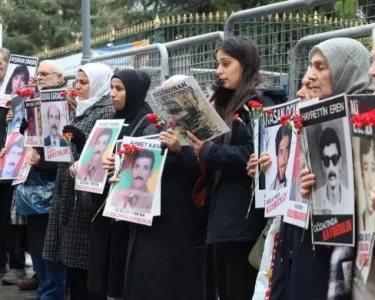 HABER MERKEZİ- Cumartesi Anneleri, 1058’inci kez kayıplarının akıbetini sormak ve adalet talebini yinelemek için toplandı. Bu hafta, 34 yıl önce Diyarbakır’da gözaltına alındıktan sonra işkenceyle öldürülen Halkın Emek Partisi (HEP) Amed İl Başkanı Vedat Aydın anıldı.