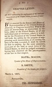 Ancak İsyan Yasası, bu yasa için bir istisna oluşturur. Yani başkan, “ülkenin yasalarının uygulanmasının fiilen engellendiği” gerekçesiyle asker gönderebilir.
