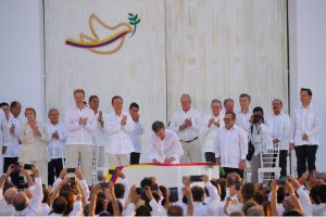 26 Eylül 2016: Kolombiya’nın Cartegena kentinde, uluslararası heyetlerin eşliğinde Kolombiya Devlet Başkanı Juan Manuel Santos ve FARC Lideri Timoşenko ve gerilla heyeti, 40 oturum sonucunda oluşturulan 297 sayfalık barış anlaşmasına imza attı.