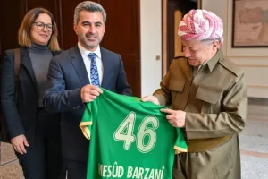 Görüşme sırasında Mesrur Barzani ve Mesud Barzani’ye Amedspor formaları takdim edildi.