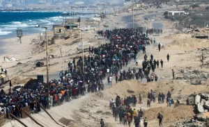 Ateşkesin ilan edilmesinin ardından binlerce Filistinli, Cuma günü Raşid Caddesi üzerinden Gazze’ye doğru yola çıktı.