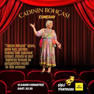 Türkiye’nin önde gelen trans aktivistlerinden Esmeray, uzun bir aranın ardından “Cadının Bohçası” adlı tek kişilik oyununu 15 Kasım Cumartesi günü Şişli Tiyatrosu’nda izleyicilerle buluşturuyor.