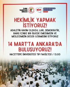 Beyaz Yürüyüş, Tıp Bayramı’na denk gelen 14 Mart’ta Ankara’da sona erecek. Hekimler, Hacettepe Üniversitesi Tıp Fakültesi önünde toplanarak kitlesel bir yürüyüşle Abdi İpekçi Parkı’na geçecek. Açık hava etkinliğinde talepler kamuoyuyla paylaşılacak.