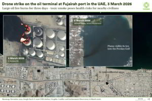×7–8 Mart’ta Tahran ve çevresindeki dört petrol tesisine düzenlenen Israil saldırıları, milyonlarca kişinin yoğun duman ve kirleticilere maruz kalmasıyla savaşın çevresel etkilerine dikkat çekti. Bu saldırılar, İran genelinde yaklaşık 30 petrol tesisini hedef alan daha geniş bir operasyonun parçasıydı.