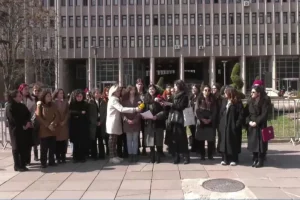 HABER MERKEZİ – Ankara’da bulunan hukuk örgütlerinin kadın komisyonları, erkekler tarafından bir günde katledilen altı kadın için, Sıhhiye Adliyesi önünde basın açıklaması gerçekleştirdi.