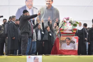 HABER MERKEZİ – Federe Kürdistan Bölgesi’nin başkenti Hewlêr’de tedavi gördüğü hastanede böbrek yetmezliği nedeniyle 11 Mart akşamı hayatını kaybeden ve cenazesi dün Rojava’ya getirilen Kürt siyasetinin önde gelen isimlerinden PYD (Demokratik Birlik Partisi) Eşbaşkanlık Konseyi Üyesi Salih Muslim için Qamişlo’da cenaze töreni düzenlendi.
