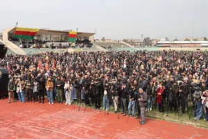 Tören bir dakikalık saygı duruşuyla başladı. Öcalan’ın gönderdiği taziye mesajı okundu.