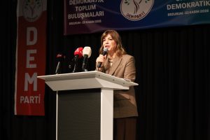 HABER MERKEZİ – Halkların Eşitlik ve Demokrasi Partisi (DEM Parti) Erzurum İl Örgütü, Barış ve Demokratik Toplum Buluşmaları kapsamında buluşma gerçekleştirildi. Necip Fazıl Kısakürek Kültür Merkezinde gerçekleştirilen buluşmaya çok sayıda kişi katıldı. Halkların Demokratik Kongresi (HDK) Eş Sözcüsü Meral Danış Beştaş ve Halkların Eşitlik ve Demokrasi Partisi (DEM Parti) Milletvekilli ve İmralı Heyeti Üyesi Pervin Buldan değerlendirmelerde bulundu.
