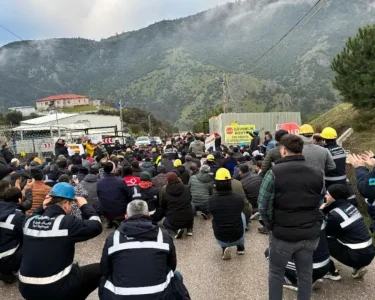HABER MERKEZİ – İzmir Kınık’taki Polyak Eynez Maden işçileri iş bırakma eyleminin 11’inci gününde, “Üreten biziz, kazanan da biz olacağız” diyerek Çinli patrona Kınık’ı terk etmesi için verdikleri sürenin dolduğunu belirterek 1243 işçiyle çalıştıkları maden işletmesinin önünde 3 vardiya olarak bir araya geldi.