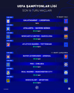 HABER MERKEZİ – Avrupa futbolunun kulüp düzeyindeki bir numaralı organizasyonunun son 16 turunda, bugün ve yarın 8 karşılaşma oynanacak.