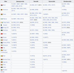 Kamerun, 5 şampiyonlukla Mısır’ın ardından ikinci sırada yer alırken, Gana 4 kez şampiyon olarak üçüncü sırada bulunuyor. Ancak Gana, elemelerde F Grubu’nu son sırada tamamlayarak 2004’ten bu yana ilk kez Afrika Uluslar Kupası’na katılamadı.