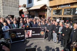 Alkış ve “Tahir Elçi ölümsüzdür” sloganıyla yürüyen kitle, Dört Ayaklı Minare önünde açıklama gerçekleştirdi. Minare önünde Ahmet Kaya’nın “Diyarbakır Türküsü” ile Tahir Elçi’nin yaptığı son konuşma dinletildi.