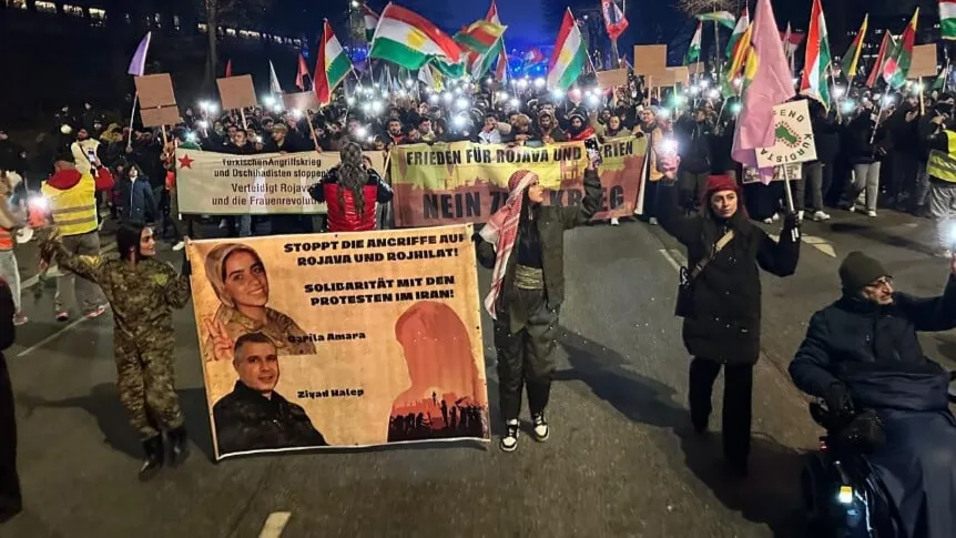 Hamburg Demokratik Kürt Halk Meclisi (DKHM) çağrısıyla binlerce kişi Şam yönetiminin saldırılarına destek açıklamaları yapan Türkiye’yi protesto etmek amacıyla Hauptbahnhof’tan Dammtor’da bulunan Türkiye Konsolosluğu’na yürüyüş düzenledi. Birçok Alman sol, sosyalist ve anti faşist hareketin de destek verdiği yürüyüşte “Rojava’yı ve kadın devrimini savunun” ve “Özgürlüğümüzü elimizden almak isteyenlere karşı hazırız” sloganları atıldı.