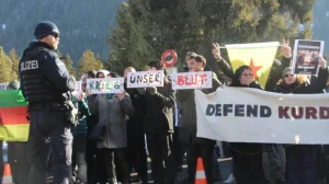 Öten yandan 19 Ocak’ta İsviçre’nin Davos kentinde başlayan ve küresel siyaset, ekonomi ve sermaye çevrelerini bir araya getiren Dünya Ekonomik Forumu (WEF) da bugün protestoların adreslerinden biriydi. İsviçre Demokratik Kürt Toplum Merkezleri (CDK-S) ile İsviçre Kürt Kadın Hareketi’nin (YJK-S) çağrısıyla düzenlenen protestoya binlerce kişi katıldı.